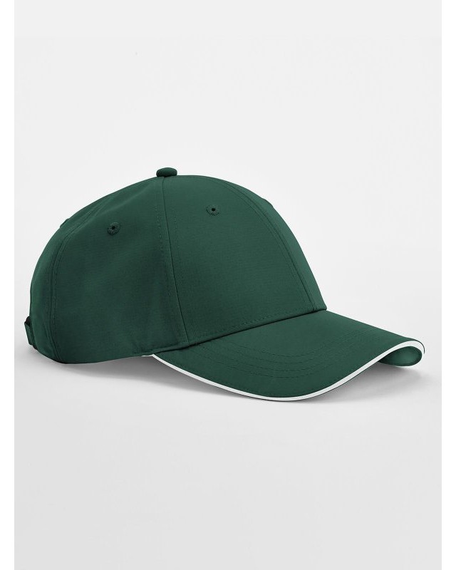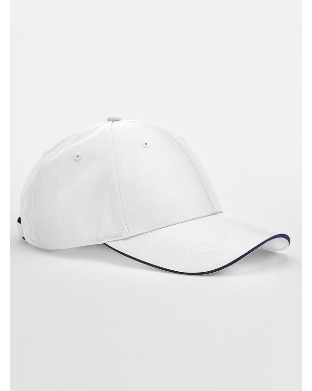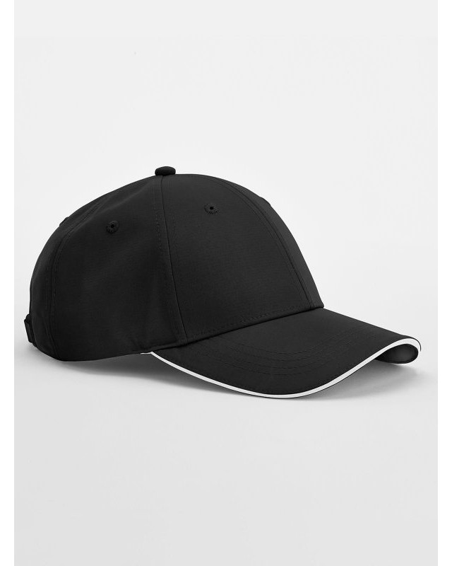 100% poliestere riciclato ripstop. Cappellino a 6 pannelli in poliestere riciclato ripstop, fascia in cotone, visiera sandwich in colore contrastante, occhielli di ventilazione cuciti, chiusura con fibbia tri-glide. Taglia unica. Etichetta strappabile.