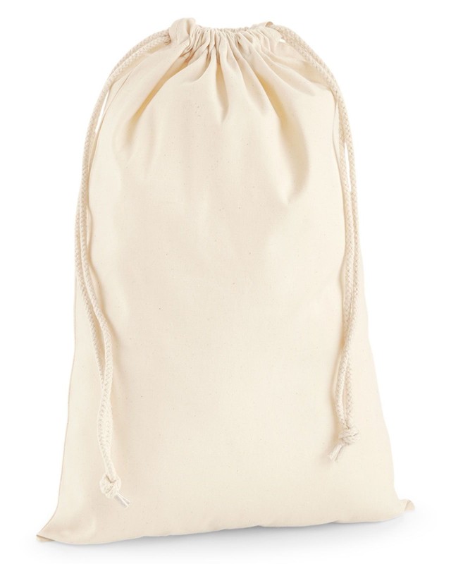 100% cotone. 200gsm (6oz/yd²), superior print surface for optimal decoration, premium cotton for enhanced durability, double draw cord closure. Dimensions: XS: 14x20.5 cm, cap. 1 lt. - S: 23x34 cm, cap. 3 lt. - M: 31x48 cm, cap. 8 lt. - L: 40x61.5 cm, cap. 15 lt. - XL: 49.5x75 cm, cap. 38 lt.
