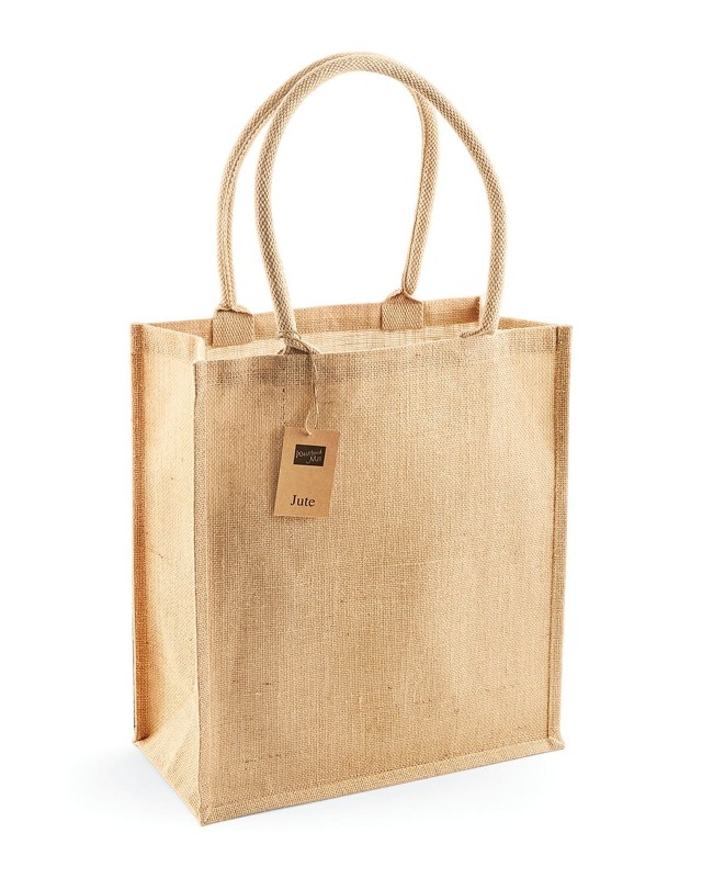 100% juta laminata. Manici in cotone, puo' essere portata a mano o in spalla. Etichetta removibile. Lunghezza del manico: 65 cm Dimensioni: 36 x 41 x 17 cm Capacita': 19 litri