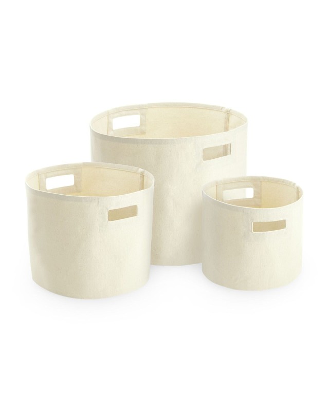 100% cotone canvas. Recipiente multiuso in tessuto resistente di ottima qualità. Maniglie integrate rinforzate. Etichetta removibile. Dimensioni: S: 23x20cm, cap. 6lt. - M: 28x24cm, cap. 13lt. - L: 38x30cm, cap. 28lt.