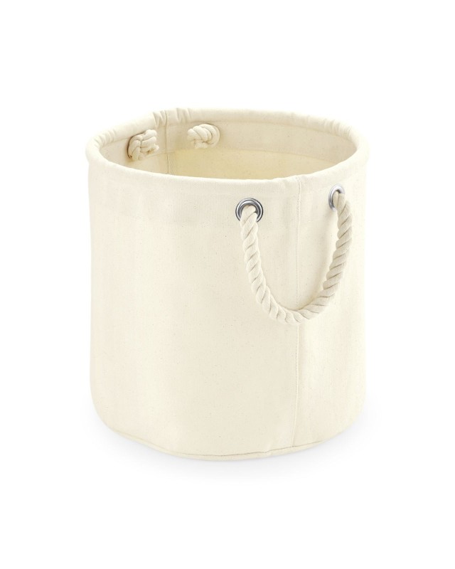 100% cotone canvas. Cesta con struttura solida e resistente, manici in corda per il trasporto. Etichetta removibile. Dimensioni: S: 30x30cm, cap. 21lt. - M: 40x40cm, cap. 50lt. - L: 40x60cm, cap. 75lt.