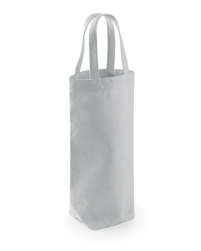 100% Cotone Canvas. Shopper porta bottiglia certificata commercio equo e solidale. Etichetta removibile. Lunghezza manico: 30 cm, dimensioni: 8 x 27 x 8 cm, capacita': 2 litri, area stampabile: 13 x 18 cm.