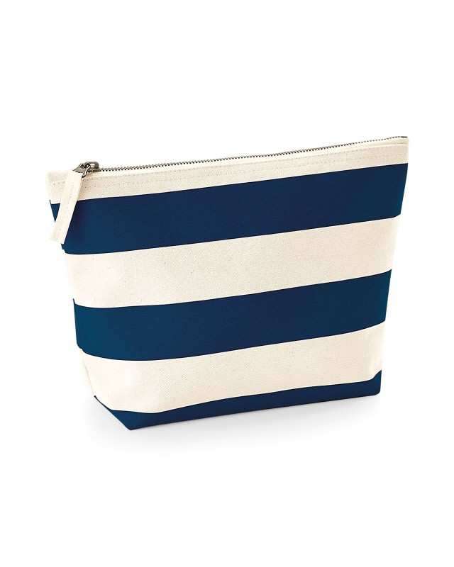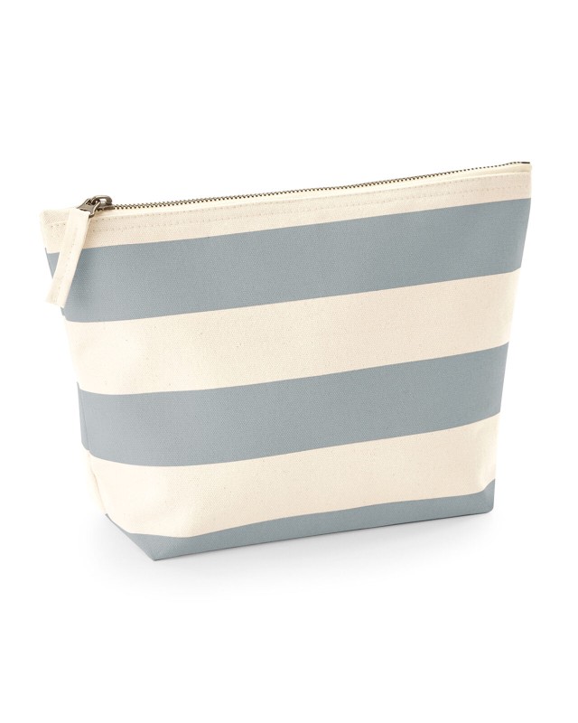 100% cotone Canvas. Astuccio con motivo a strisce, multiuso, chiusura con zip. Etichetta removibile. Dimensioni: 19x18x9 cm, capacità: 3 litri, area stampabile: 26x12 cm.