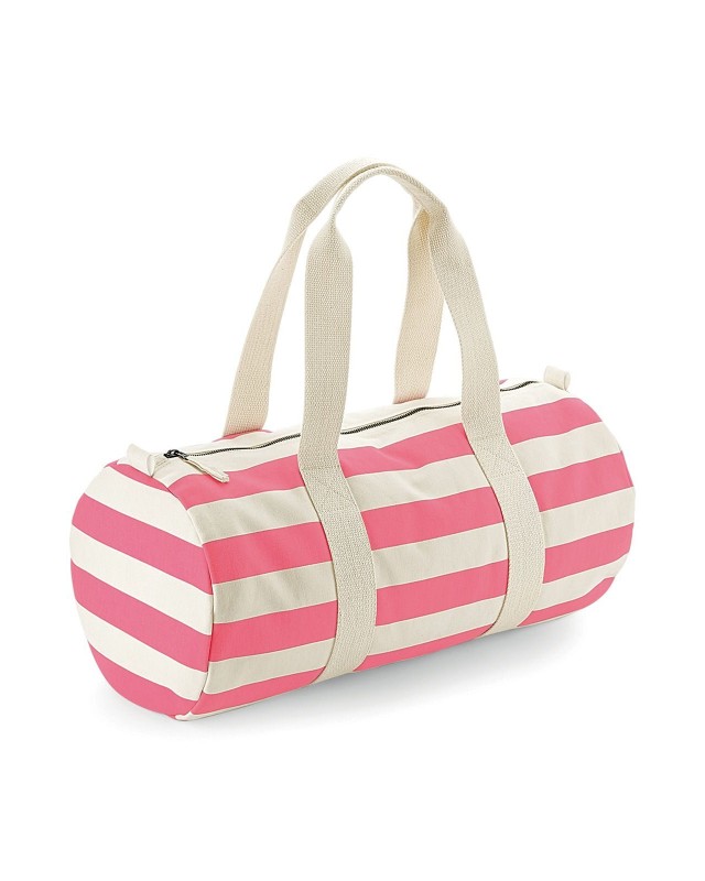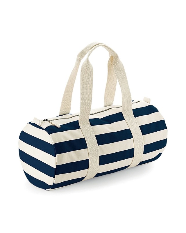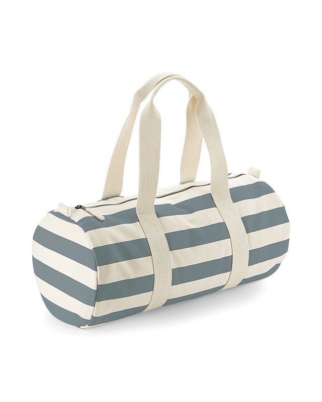 100% Cotone Canvas pettinato. Borsa con motivo stampato a strisce, chiusura con zip, manici a tracolla. Etichetta removibile. Dimensioni 50x25x25 cm. Capacità 20 litri. Area di stampa: parte anteriore 13x12 cm, estremità 15x15 cm.