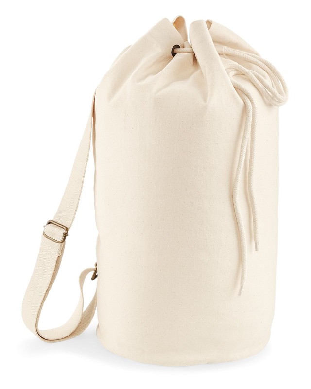 100% Cotone Canvas organico. Sacca in tessuto certificato Control Union. Chiusura con cordino regolabile. Etichetta removibile. Dimensioni: 25 x 53 x 25 cm, capacita': 20 litri, area stampabile: 40 x 40 cm.