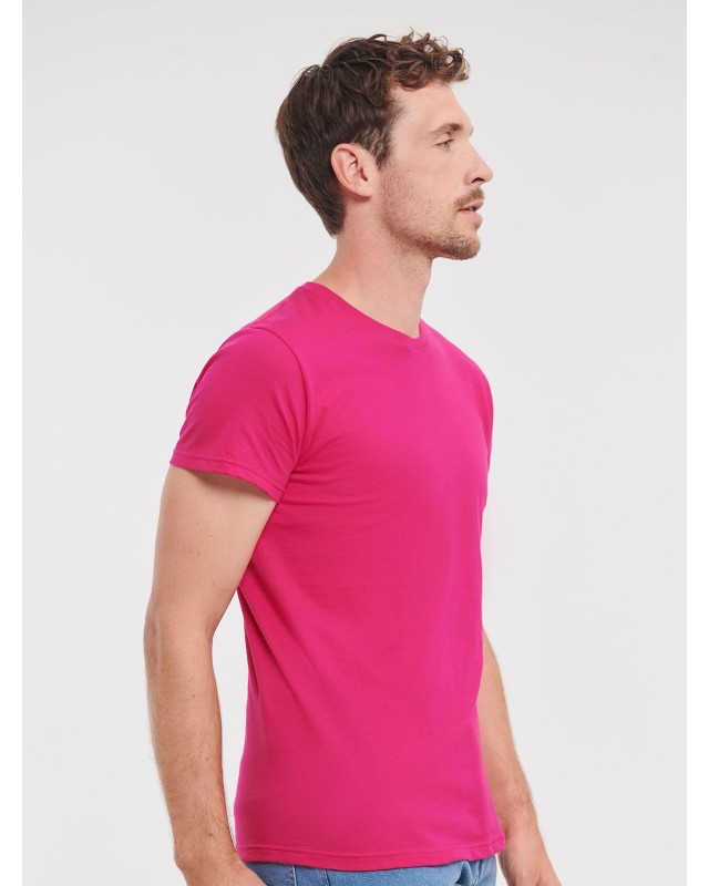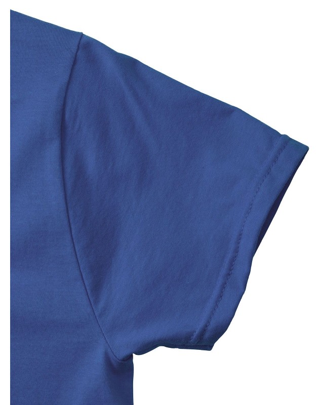 100% cotone ring-spun. T-shirt manica corta, girocollo in costina 1x1 con cucitura decorativa, nastro di rinforzo al collo, struttura con busto tubolare. (Col. 30: 140 g/m²).