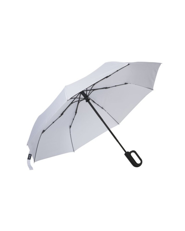 Ombrello in R-PET automatico con manico moschettone Materiale: Rpet pongee Dimensioni: 21"X8/Ø 98CMX33H (CLOSED)- 60H CM OPEN Grammatura: 190T RPET PONGEE