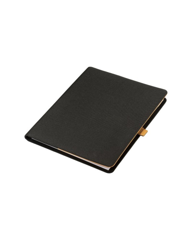 Cartella porta blocco A4 in R-PET con gancio di chiusura in metallo. Blocco da 20 fogli a righe incluso. Scomparti laterali porta documenti e porta biglietti da visita, anello porta penna elastico interno Materiale: Rpet Dimensioni: CM 23,5 X 31 X 1,5