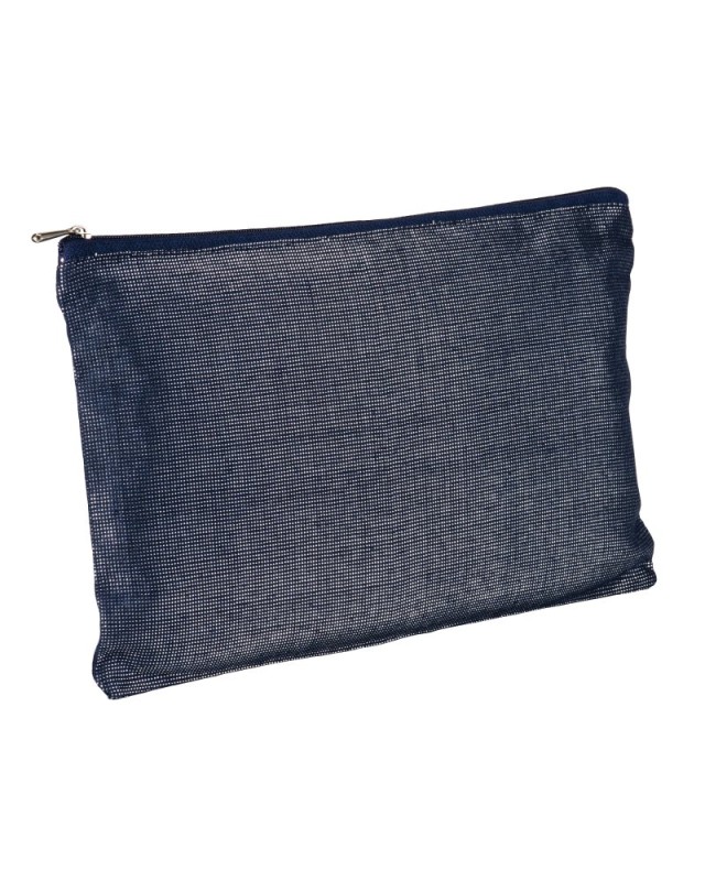 Beauty case in policotone brillante con zip Materiale: Cotton + fibra metallica Dimensioni: 26 X 17 CM Grammatura: 150 GSM M2