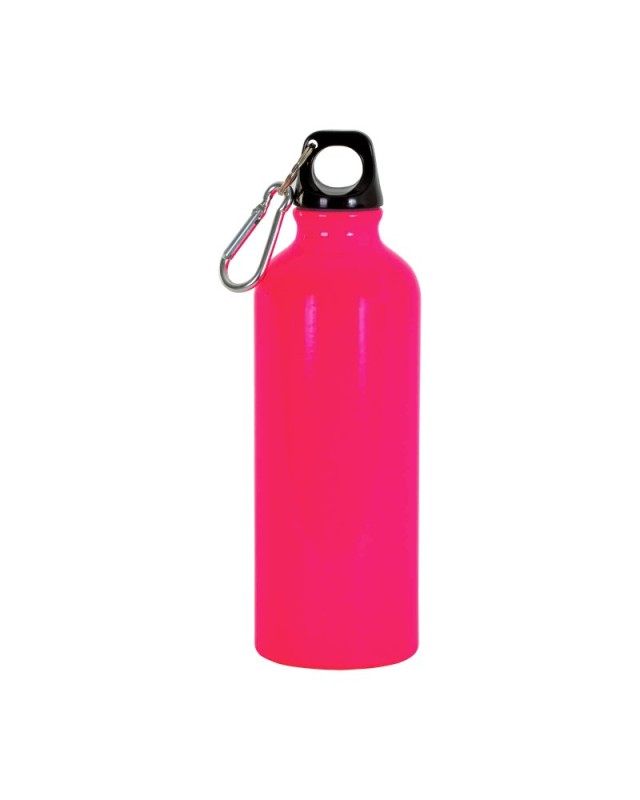 Borraccia in alluminio (500ml), con tappo in plastica e moschettone (22 cm altezza per 6,5 cm diametro ) colori FLUO Materiale: Aluminium Dimensioni: 0,5L 21,5(H) X 6,5(D) CM