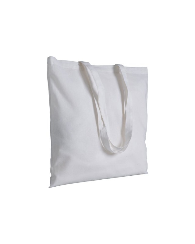 Shopper in cotone 120 g/m2, manici lunghi. Colore bianco potrebbe subire leggero calo peso rispetto al valore indicato, dovuto al candeggio cui viene sottoposto Materiale: Cotton Dimensioni: 38 X 42 CM (HANDLES: 2,5 X 70 CM)