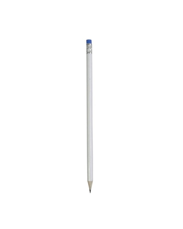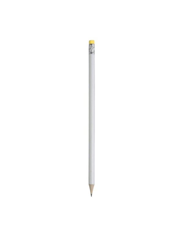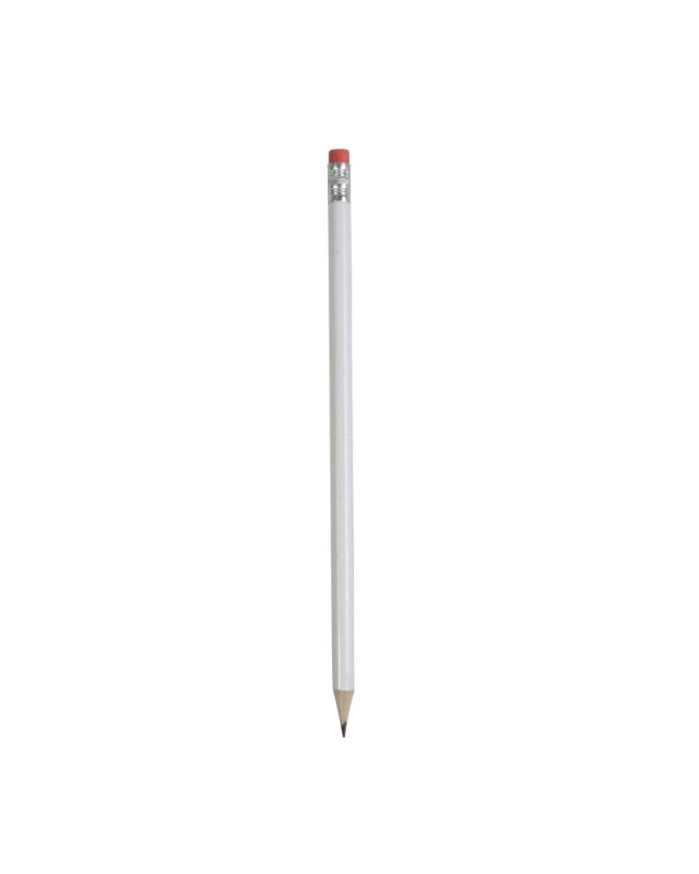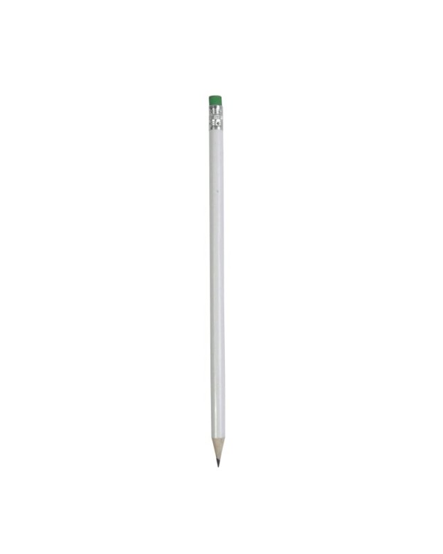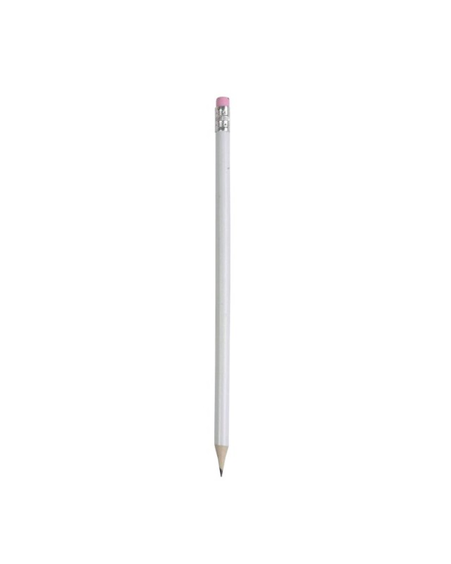 MATITA BIANCA IN LEGNO CON MINA IN GRAFITE, A SEZIONE CILINDRICA, CON GOMMINO COLORATO 16821