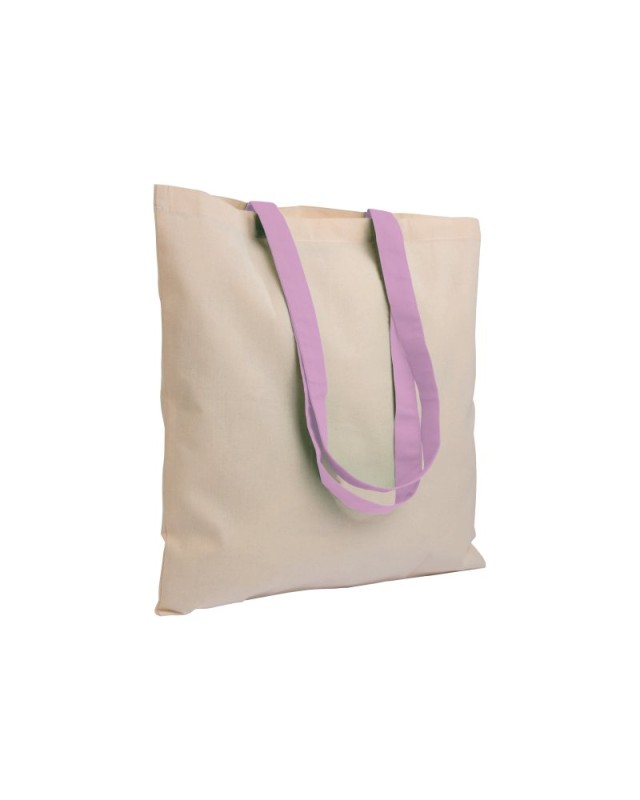 Shopper in cotone naturale 135 g/m2, manici lunghi colorati Materiale: Cotton Dimensioni: 38 X 42 CM (HANDLES: 2,5 X 70 CM)