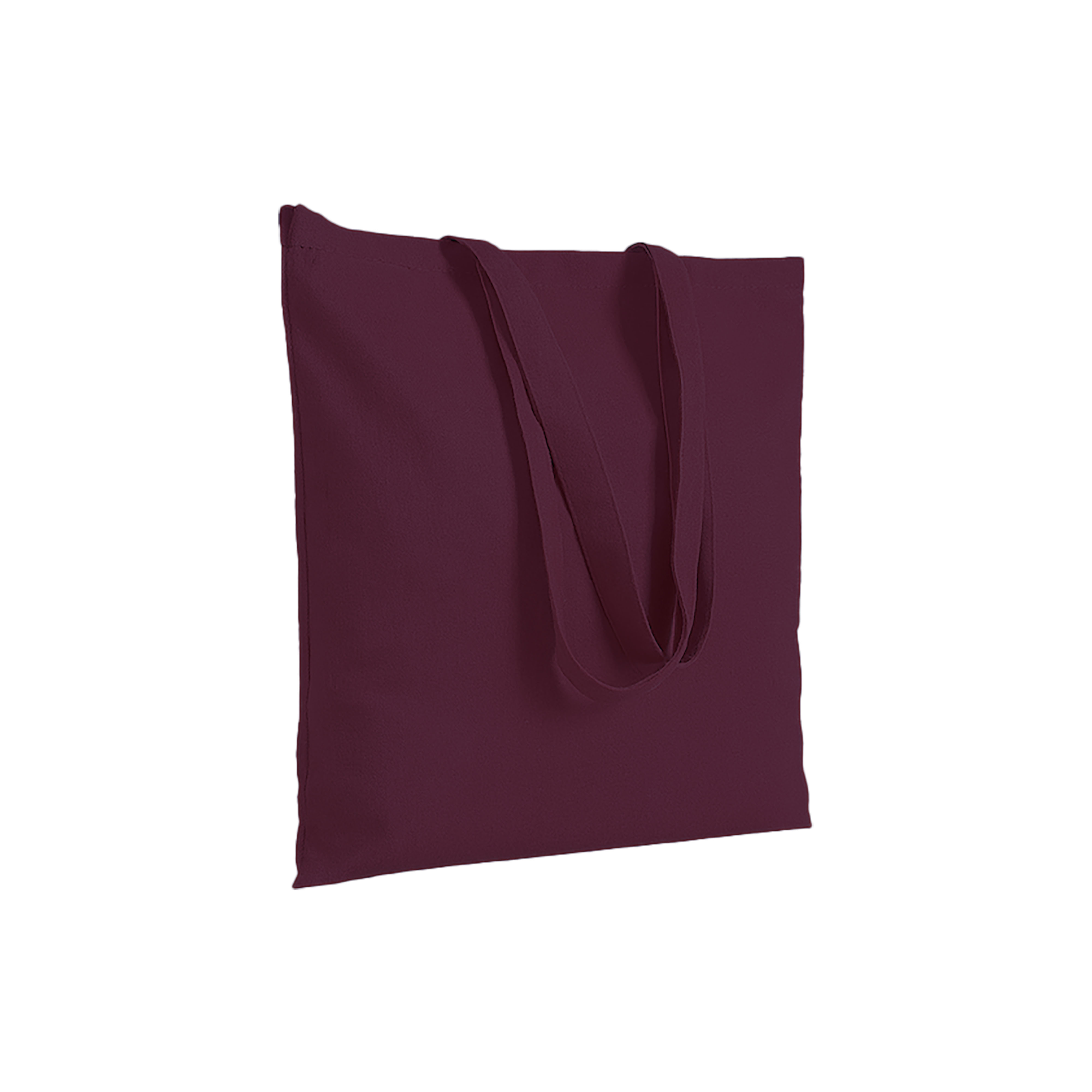 Shopper in cotone 130 g/m2, manici lunghi Materiale: Cotton Dimensioni: 38 X 42 CM -MANICI 70 X 2,5 CM