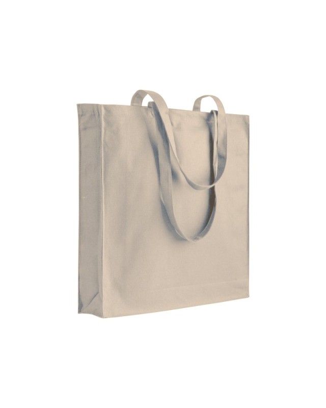 Shopper con soffietto in cotone 250 g/m2, manici lunghi e chiusura con zip Materiale: Cotton Dimensioni: 38X42X8 CM Grammatura: 220 GSM M2