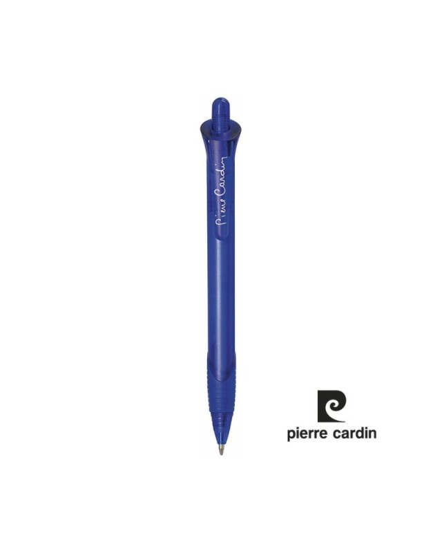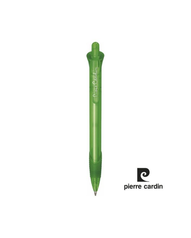 Biro a pulsante Pierre Cardin dal design originale e dal fusto liscio con finitura semi trasparente e colori vivaci. Con accessori coordinati e logo del marchio sulla clip. Comoda impugnatura in gomma, cartuccia jumbo e inchiostro blu. - Diametro: 1.1 cm - Peso: 10 gr