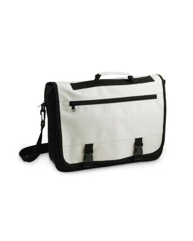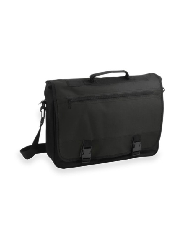 Portadocumenti con patta di chiusura in velcro in poliestere 600D con elegante tracolla frontale nera. Con maniglie di trasporto rinforzate e tracolla regolabile. Scomparti interni per penne e custodia per smartphone in PVC con funzione touch. - Lunghezza: 39 cm - Larghezza: 9 cm - Peso: 365 gr
