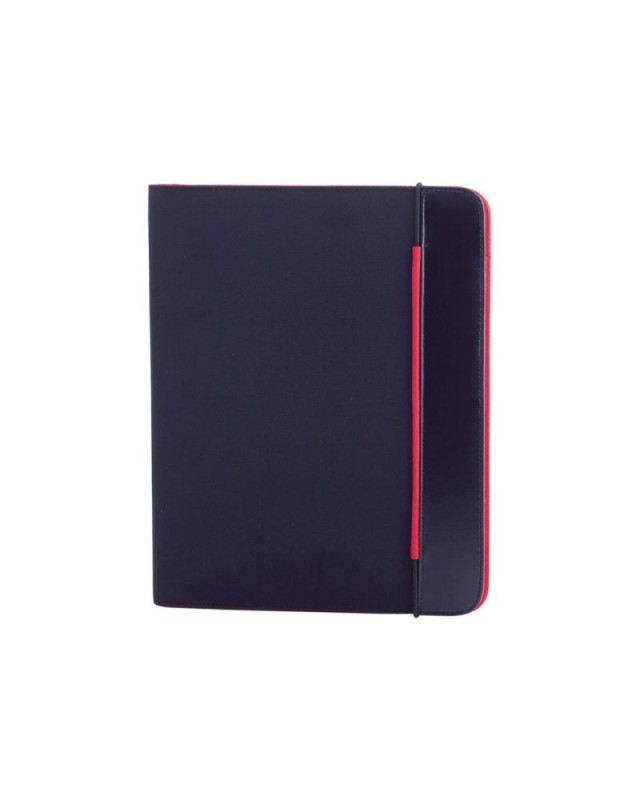Cartellina dal design bicolore dai colori vivaci, rifinita in morbida microfibra con chiusura elastica. Interno in tinta con block notes estraibile da 20 fogli bianchi, tasca con patta, portacarte e portapenne. - Lunghezza: 25.3 cm - Larghezza: 1.3 cm - Peso: 476 gr