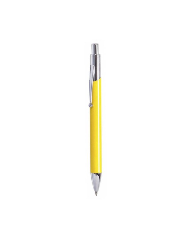Biro a pulsante dalloriginale design bicolore. Con fusto in metallo liscio rifinito in colori vivaci. Punta e clip in argento. Confezionata in una custodia in similpelle abbinata. Con cartuccia jumbo e inchiostro blu. - Diametro: 1.1 cm - Peso: 15 gr