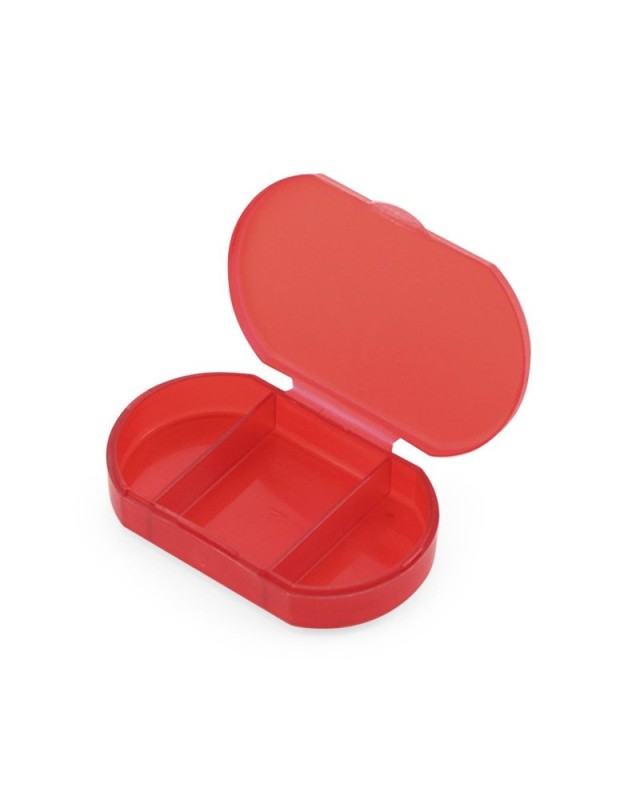 Portapillole con corpo semitrasparente in colori vivaci, con 3 scomparti e chiusura di sicurezza. - Lunghezza: 6 cm - Larghezza: 3.9 cm - Peso: 6 gr