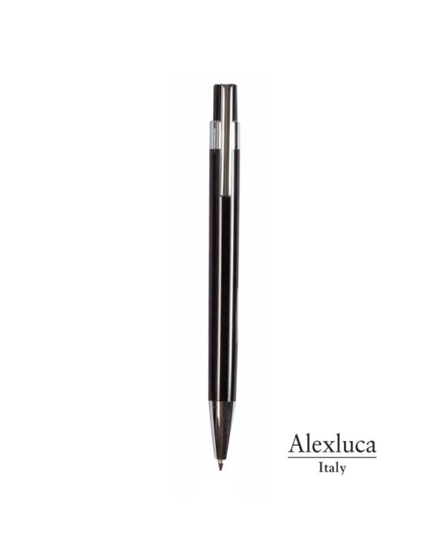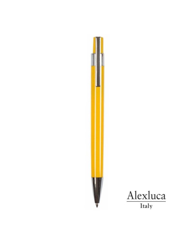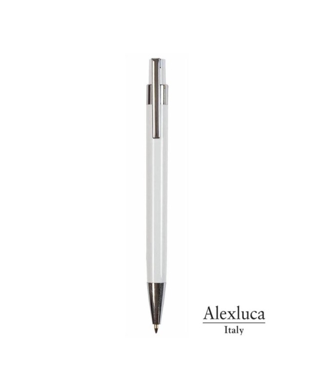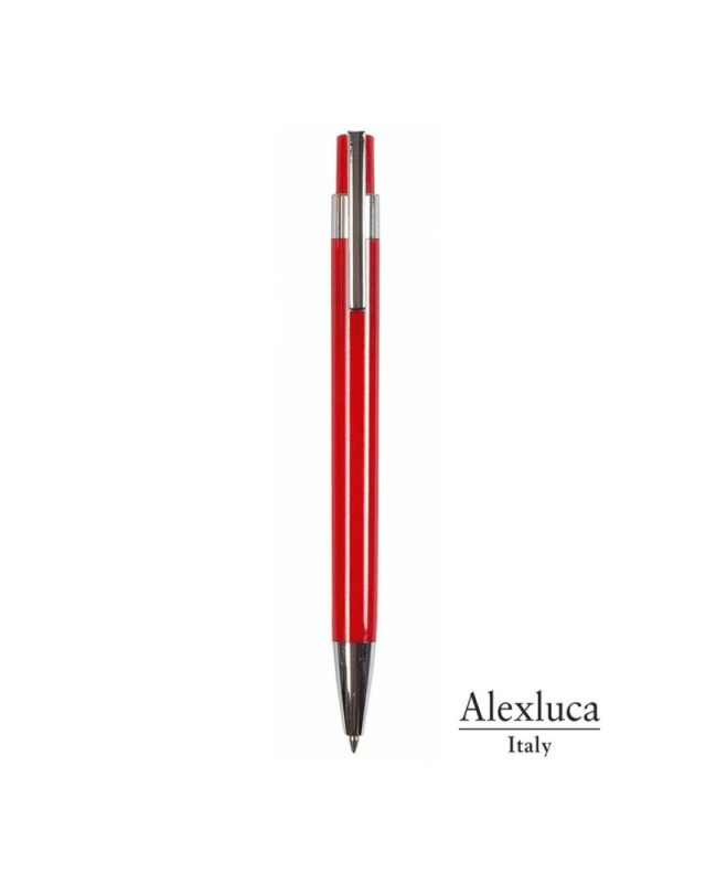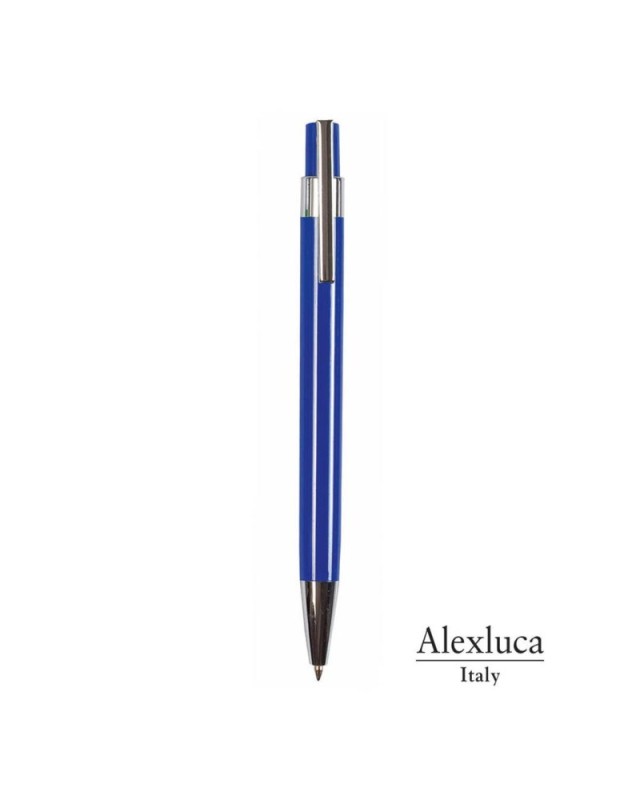 Biro a pulsante by Alexluca con elegante design bicolore e fusto con finitura liscia e lucida in colori pieni di grande effetto. Con finiture in argento lucido e logo del marchio sulla parte superiore del pulsante. Cartuccia Jumbo e inchiostro blu. - Diametro: 1 cm - Peso: 9 gr