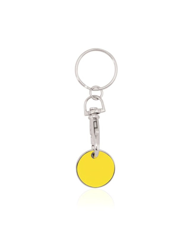 Portachiavi in metallo dal design divertente e multicolore con moneta rimovibile e chiusura a moschettone. - Diametro: 2.3 cm - Peso: 13 gr