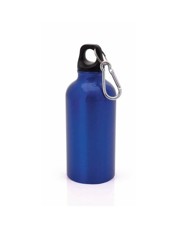 Borraccia da 400 ml con corpo in alluminio in unampia gamma di colori brillanti. Con tappo di sicurezza a vite e moschettone in metallo per il trasporto. Confezionata singolarmente in una scatola dal design accattivante." - Diametro: 6.6 cm - Peso: 65 gr