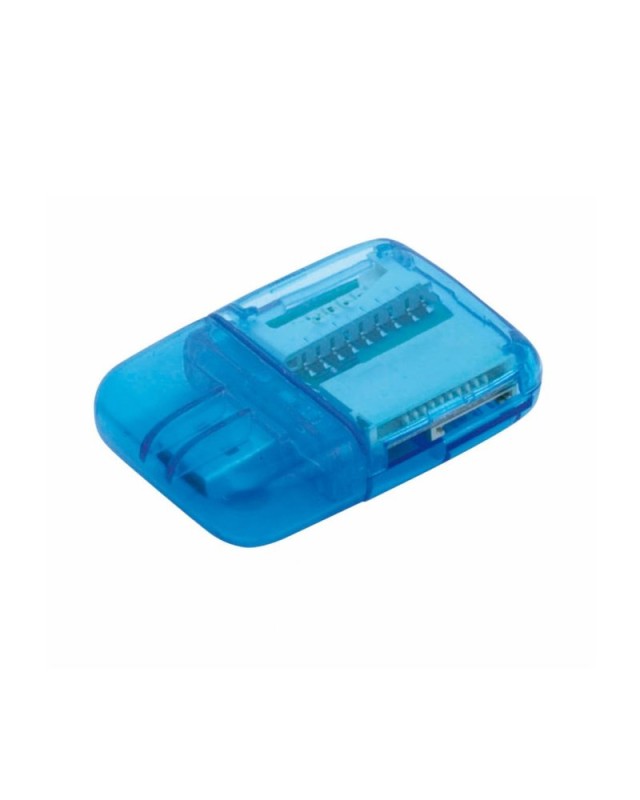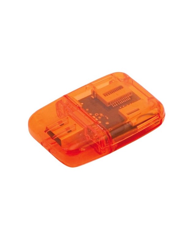 Lettore di schede con connessione USB 2.0 in divertenti colori trasparenti. Compatibile con schede M2, MS Duo, micro SD e SD. Confezionato singolarmente. - Lunghezza: 3.7 cm - Larghezza: 1.3 cm - Peso: 14 gr