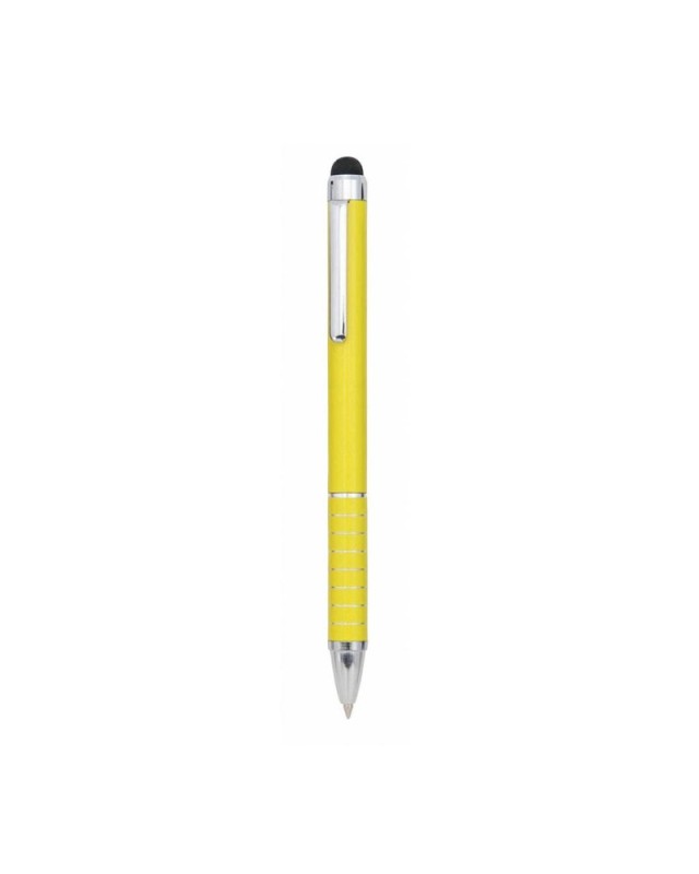 Penna puntatore con meccanismo Twist e fusto in alluminio liscio con finitura metallica in colori vivaci. Accessori e anelli color argento. Impugnatura originale ad anelli e inchiostro blu. - Diametro: 0.9 cm - Peso: 12 gr