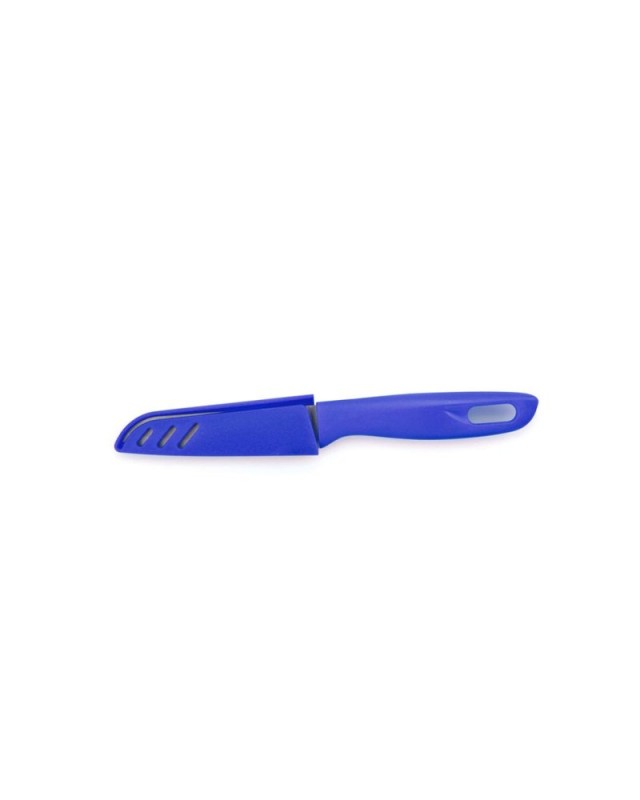 Coltello con lama in acciaio inox e manico ergonomico fustellato. Guaina di sicurezza abbinata per la lama. - Lunghezza: 3 cm - Larghezza: 1.5 cm - Peso: 37 gr