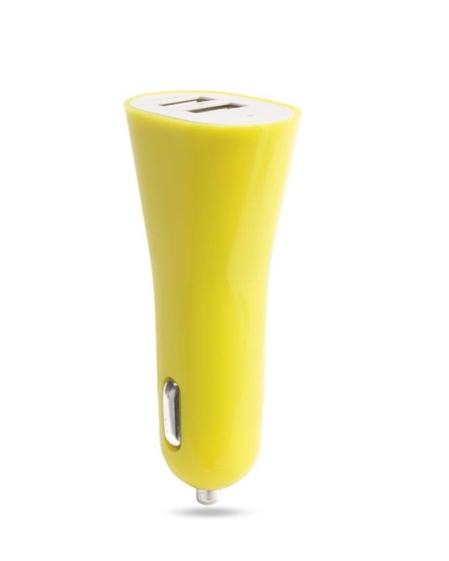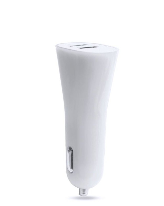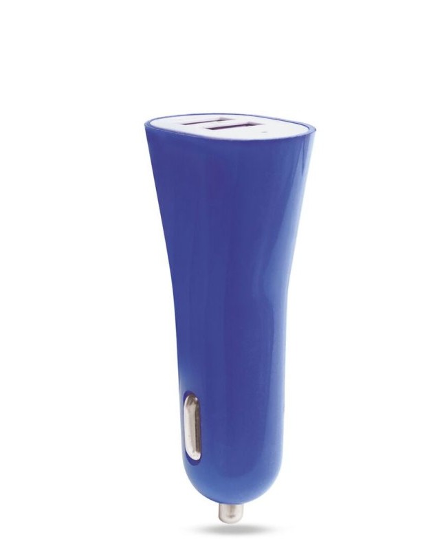 Caricatore USB per accendisigari per auto con capacità di ricarica di 2.100 mA in un design casual a due colori. La doppia uscita USB consente la ricarica simultanea di due dispositivi mobili. Coperchio traslucido con indicatore di carica a LED e presentato in una scatola individuale. - Lunghezza: 2.6 cm - Larghezza: 3.7 cm - Peso: 21 gr