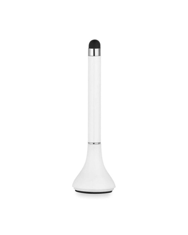 Originale penna a sfera con cappuccio. Design minimalista con fusto bianco lucido e base per la pulizia dello schermo. Inchiostro blu. - Diametro: 3 cm - Peso: 9 gr