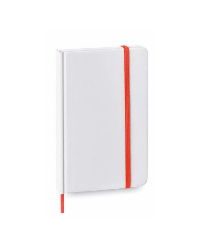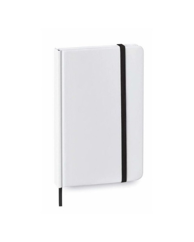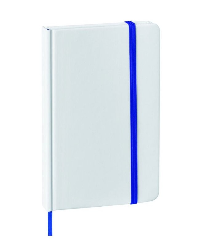 Blocknotes con copertina soft touch in cartoncino resistente ed elegantemente rifinito in bianco. Appositamente progettato per la stampa digitale sulle copertine, ha 80 fogli lisci, rilegatura elastica e segnalibro in tessuto coordinato. - Lunghezza: 9 cm - Larghezza: 1.3 cm - Peso: 105 gr