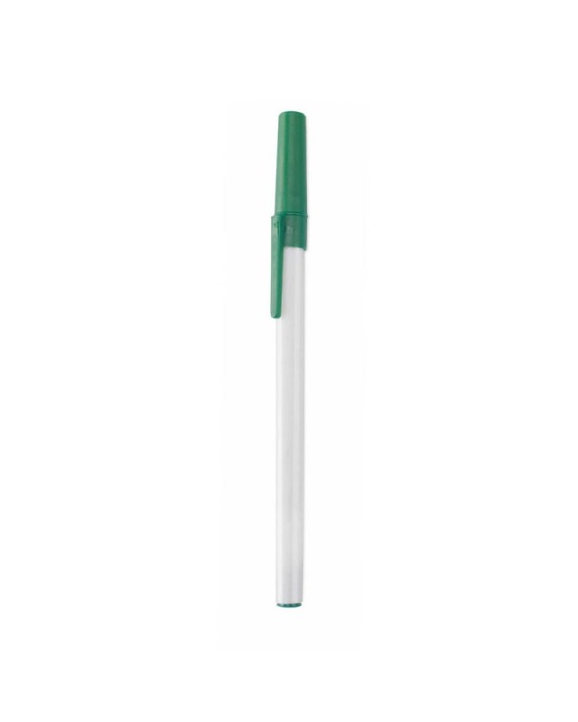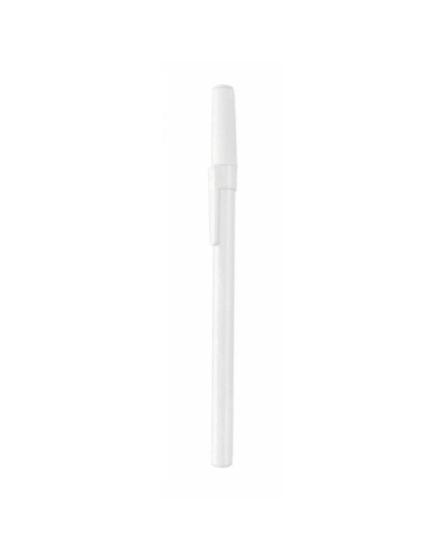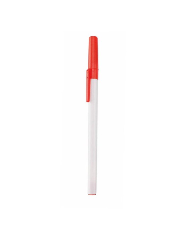 Classica biro a cappuccio bicolore con fusto liscio bianco semitrasparente e accessori dai colori vivaci. Refill blu. - Diametro: 0.8 cm - Peso: 4 gr