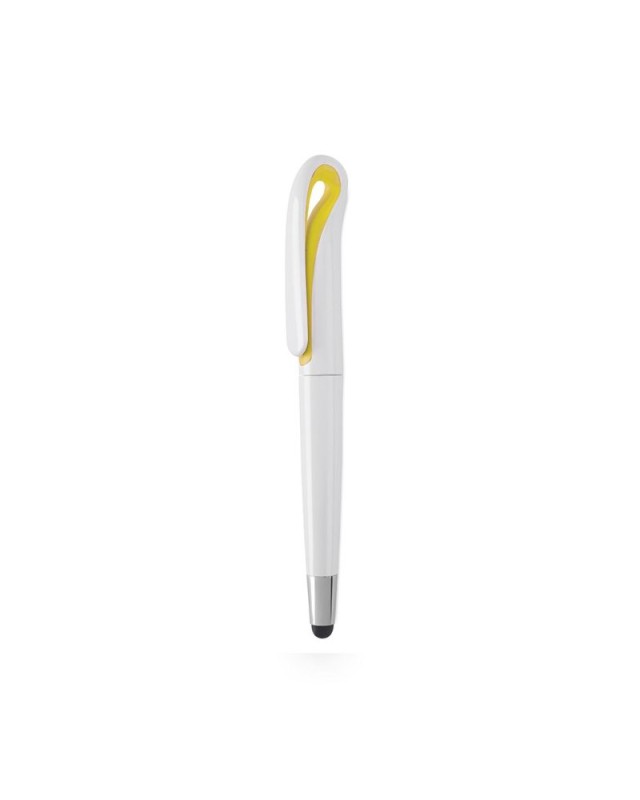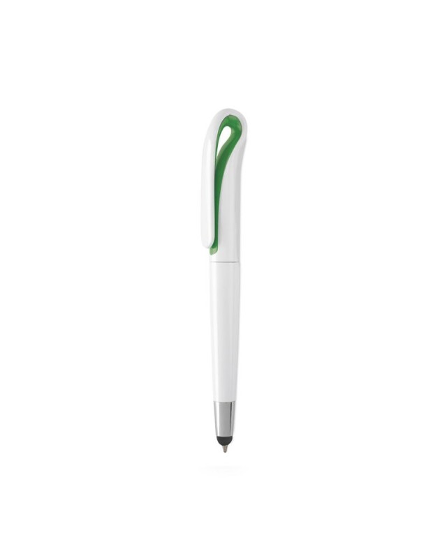 Penna a rotazione bicolore con finiture dai colori vivaci e fusto liscio con finitura bianca lucida. Con clip ricurva originale bicolore. Refill blu. - Diametro: 1.3 cm - Peso: 20 gr