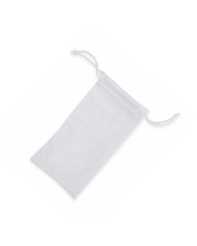 Custodia in morbido poliestere con finitura bianca e chiusura a cordoncino in tinta. Appositamente progettata per la stampa in sublimazione. - Lunghezza: 9 cm - Peso: 8 gr