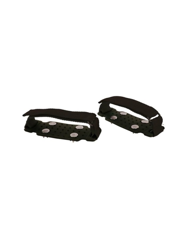 Coppia di ramponi antiscivolo per ghiaccio e neve in poliestere resistente in vari colori. Con sistema antiscivolo quadruplo e regolazione tramite velcro. - Lunghezza: 12.7 cm - Larghezza: 5.2 cm - Peso: 97 gr