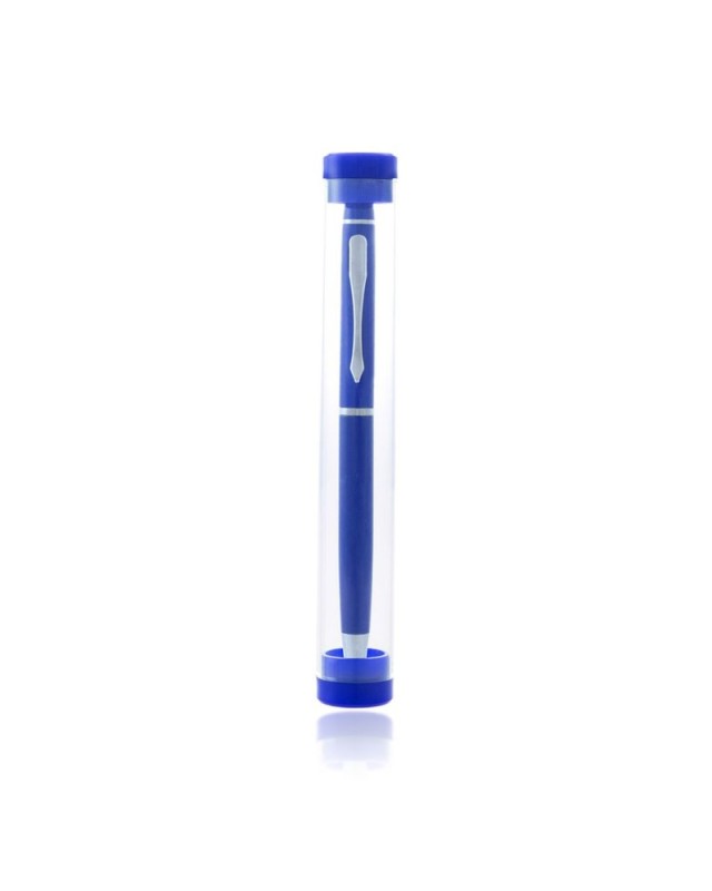 Penna con meccanistmo a rotazione con fusto in alluminio liscio con finitura metallizzata in diversi colori. Dettagli e anelli color argento, con stilo abbinato. Presentata nella custodia originale trasparente abbinata. Inchiostro blu. - Diametro: 2.1 cm - Peso: 36 gr