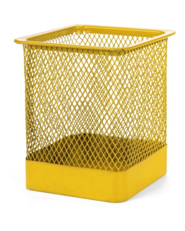 Portapenne a rete in metallo con finitura lucida e colori brillanti. Presentato in una scatola dargento individuale. - Lunghezza: 8 cm - Larghezza: 8 cm - Peso: 70 gr