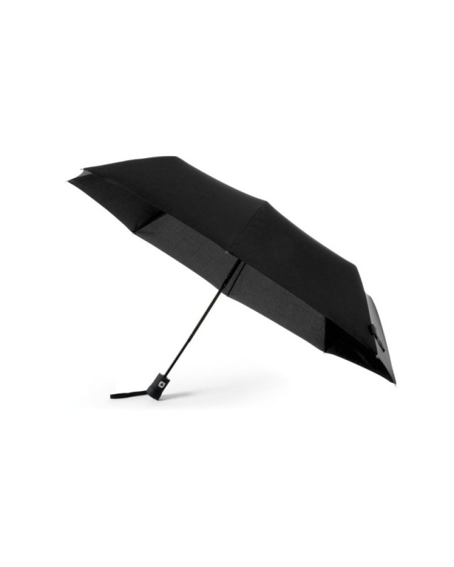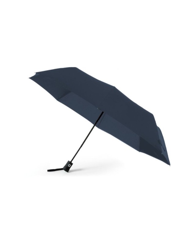 Ombrello pieghevole a 8 pannelli di alta qualità in colori sobri. Con un diametro di 98 cm, apertura automatica e realizzato in resistente materiale pongee. Con stecche in metallo nero, chiusura in velcro e manico ergonomico con cinghia per il trasporto. Presentato in una custodia individuale coordinata. - Diametro: 100 cm - Peso: 390 gr