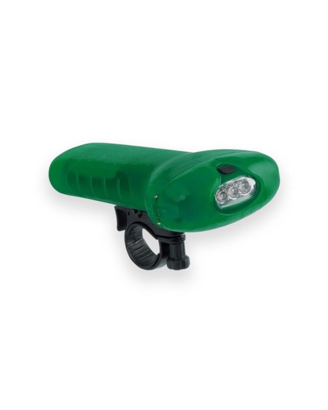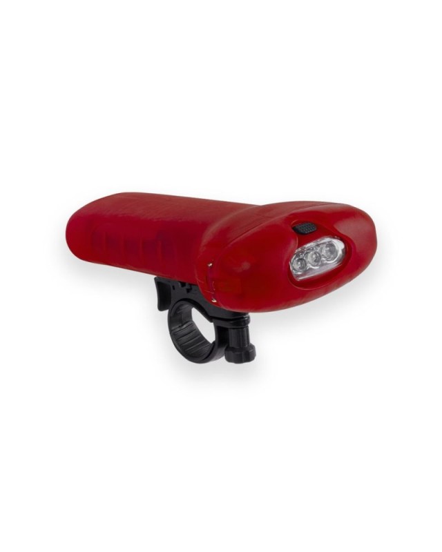 Luce da manubrio multifunzionale con 3 LED e 2 posizioni di illuminazione, con corpo dai colori vivaci e finitura liscia. Con opzione per la regolazione dellalta potenza. Alimentazione a batteria: 3xAAA non incluse. Confezionata singolarmente in colore argento. - Lunghezza: 7.6 cm - Larghezza: 6.4 cm - Peso: 78 gr