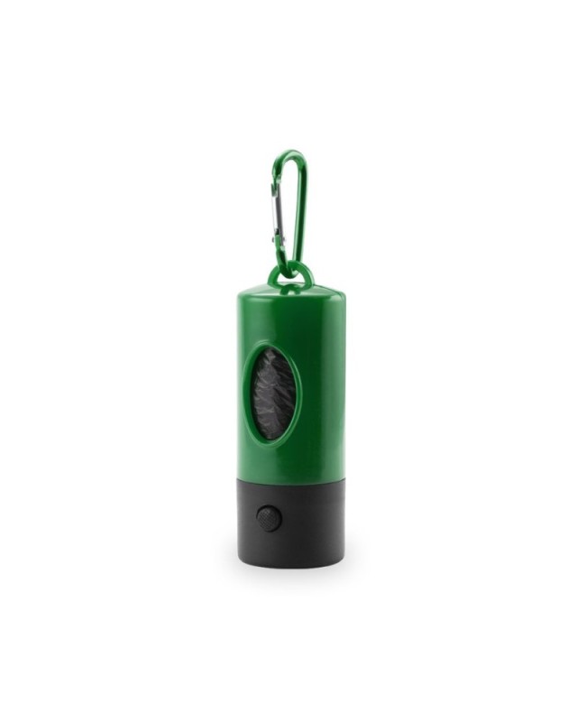 Distributore di sacchetti per animali domestici con resistente corpo in colori vivaci. Con torcia a LED integrata. Include 15 sacchetti. - Diametro: 4.1 cm - Peso: 60 gr