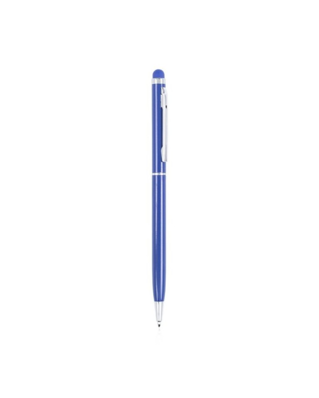 Penna Touch con meccanismo a rotazione con fusto in alluminio ultrasottile con finitura metallizzata liscia in diversi colori e touch abbinato. Inserti e anelli color argento. Inchiostro blu. - Diametro: 0.7 cm - Peso: 9.5 gr