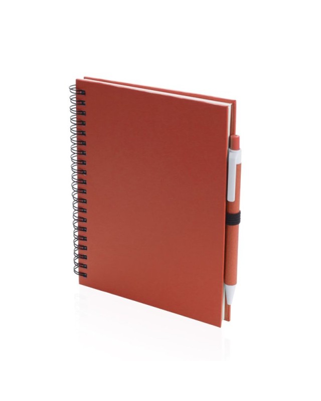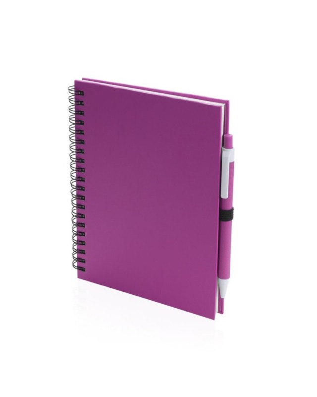 Set di notebook e penna. Notebook ad anelli con copertina morbida al tatto in cartone riciclato e penna abbinata. Contiene 70 pagine lisce con portapenne. Disponibile in una gamma di colori vivaci. - Lunghezza: 15 cm - Larghezza: 1.9 cm - Peso: 192 gr