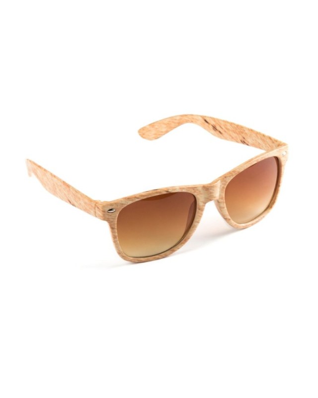 Occhiali da sole con protezione UV400 dal design classico. Con montatura in simil-legno naturale e lenti abbinate. - Peso: 25 gr