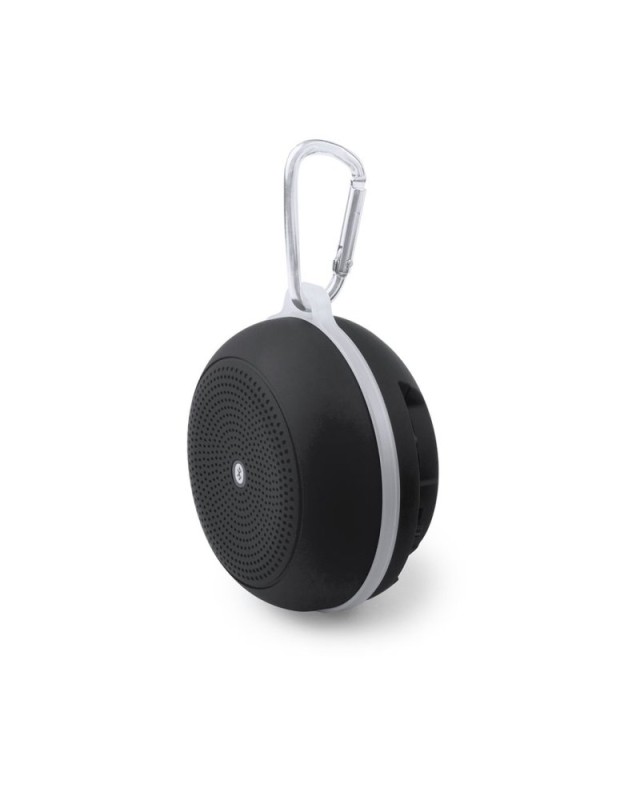 Compacto altavoz de conexión Bluetooth®. De diseño bicolor desenfadado, incluye mosquetón metálico de transporte. Con conexión Bluetooth® 3.0, ofrece 3W de potencia, tiene función de manos libres, una ranura para tarjetas mini SD de hasta 32 GB de capacidad, función radio FM, entrada auxiliar de línea mediante conexión jack de 3,5mm y soportes de goma antideslizantes en la base. Compatible con iOS y Android, incluye cable de carga mini USB, cable auxiliar jack de 3,5mm y viene presentado en atractiva caja de diseño. - Diametro: 8.1 cm - Peso: 120 gr