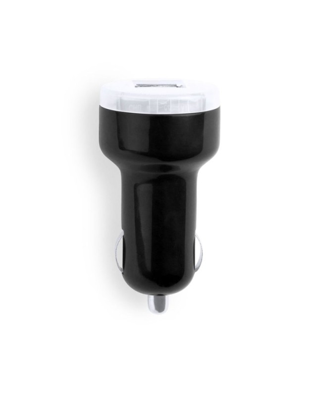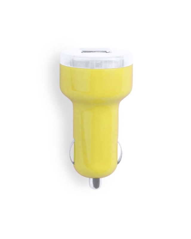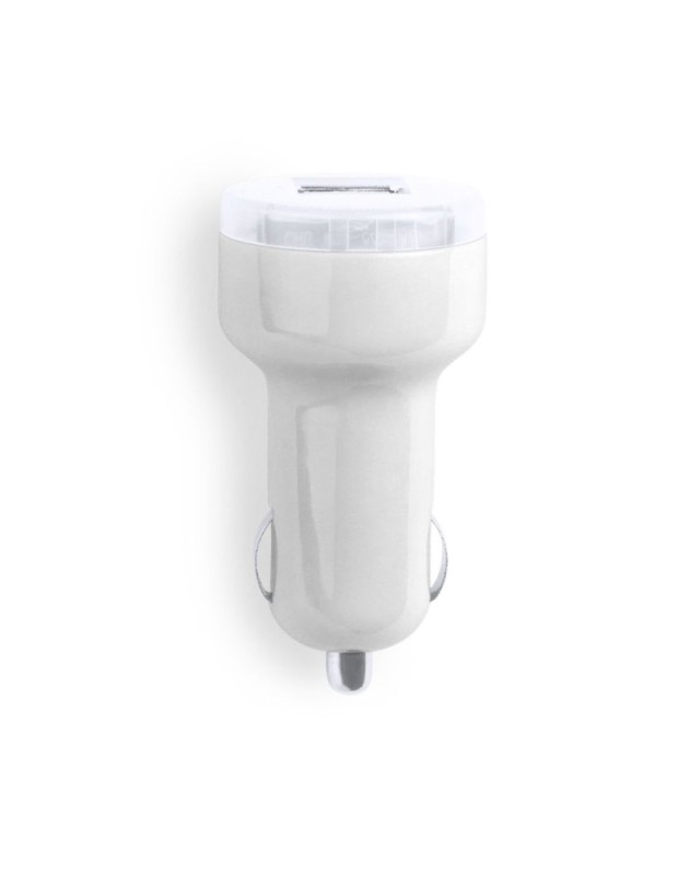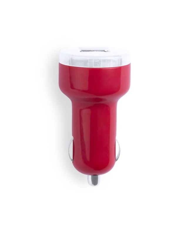 Caricatore USB da accendisigari per auto con capacità di carica di 2.100 mAh in colori freschi. Con doppia uscita USB che consente la ricarica simultanea di due dispositivi mobili. Con indicatore di carica a LED e presentato in una scatola individuale. - Diametro: 3.2 cm - Peso: 17 gr