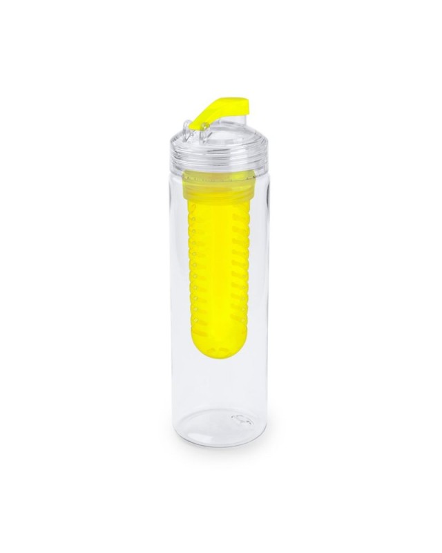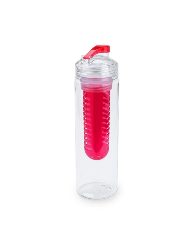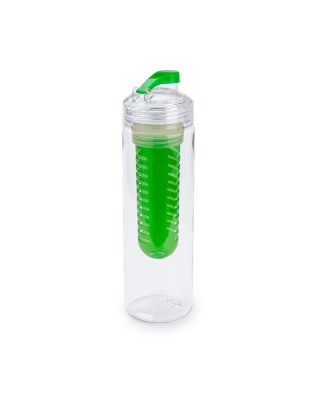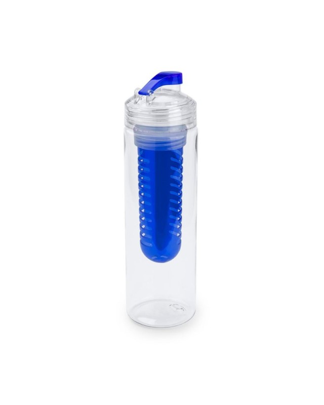 Bidone con capacità di 700 ml in materiale tritan resistente al calore. Con dispenser di sicurezza e tappo a vite con accessorio refrigerante in colori vivaci. Inscatolato individualmente - Diametro: 7 cm - Peso: 155 gr