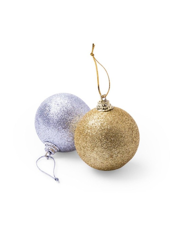 Set di 6 palline di Natale da appendere in una gamma di colori metallizzati brillanti. Presentate in un sacchetto individuale con striscia bianca per la personalizzazione e palline in colori assortiti. - Lunghezza: 10 cm - Larghezza: 5 cm - Peso: 15 gr