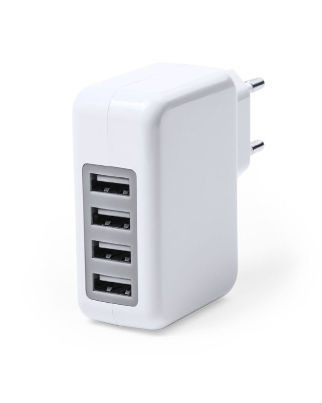 Caricatore da parete USB a uscita multipla con capacità di ricarica di 3.100 mA in un elegante design bianco con unampia superficie di stampa. La sua uscita quadrupla lo rende il gadget ideale per la ricarica simultanea. - Lunghezza: 2.8 cm - Larghezza: 6.8 cm - Peso: 54 gr